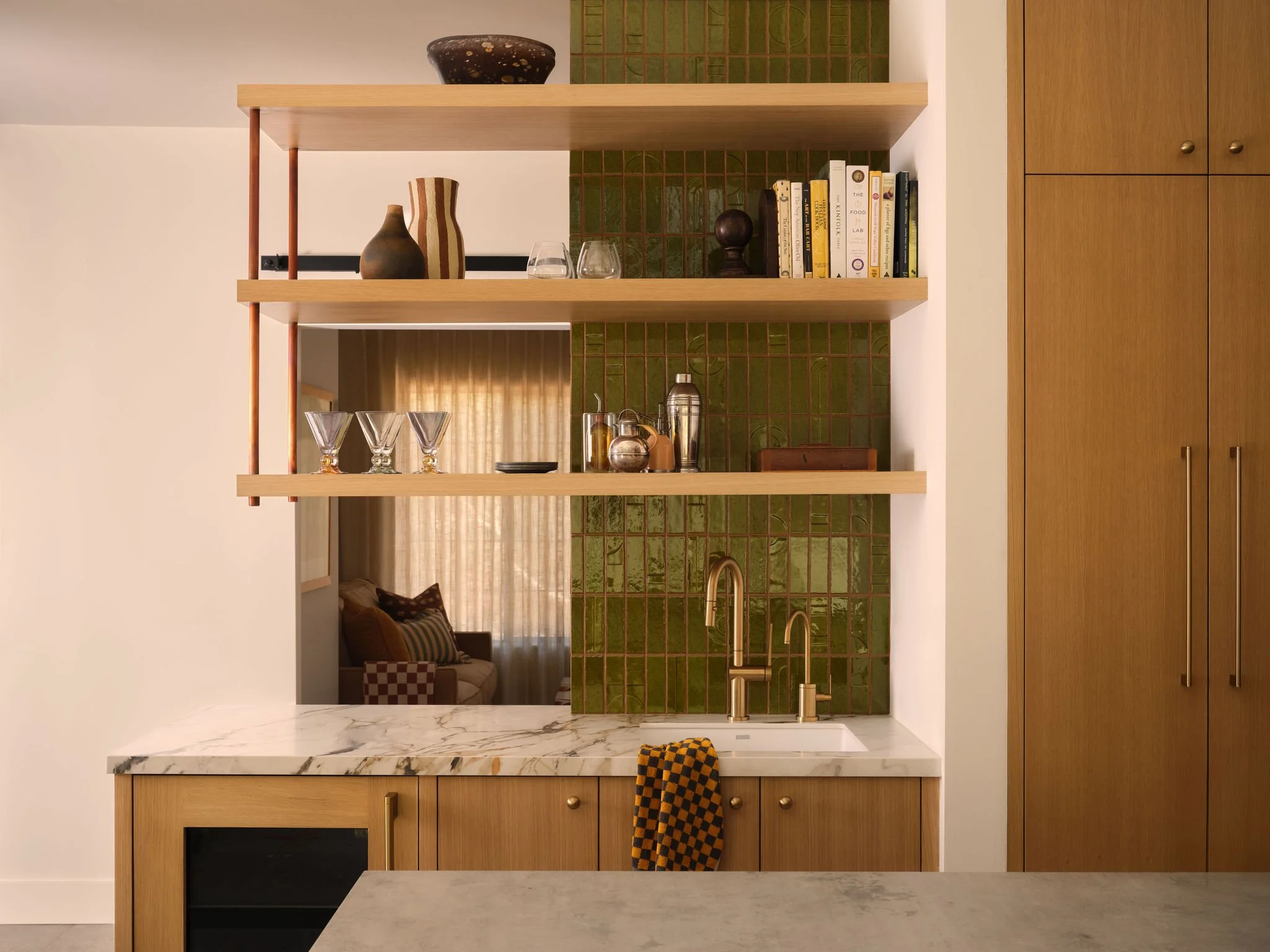 We re-evaluated materials midway through construction to stay within budget. Rather than replacing all windows, we prioritized the new door and window layout in the main space where light and connection to the outdoors mattered most. This was combined with a beautiful palette created in collaboration with the designer and owners, including custom cabinet hardware fabricated by our client.