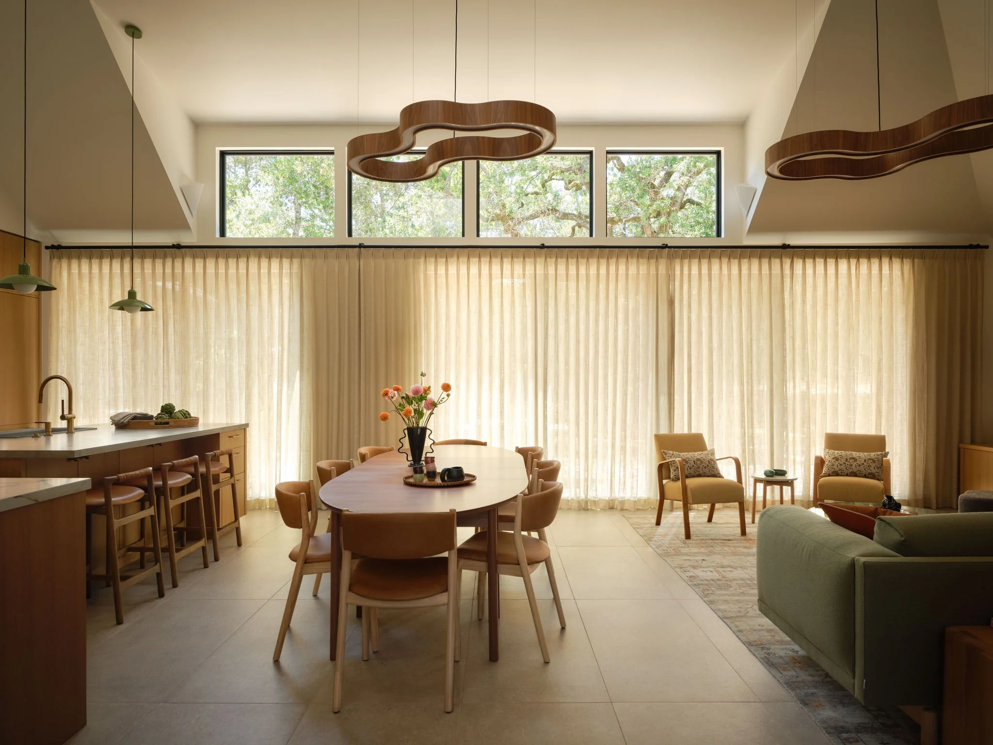 Tucked into the west side of Sonoma Valley, this 1980s home felt oversized and dark, with a massive attic and various floor level changes. The owners, who were used to a more modern aesthetic, wanted to rework the structure into a brighter, more cohesive second home.